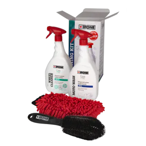 We've gathered our top cleaning products, MOTO WASH and WHEEL CLEANER, whose reputation speaks for itself, along with two new accessories: a microfiber wash mitt and a wheel brush.