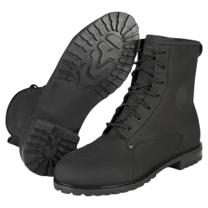 Waterproof combat style nubuck leather boots with a DRYWAY+ functional membrane. Traditional lacing for a classic look, plus a zipper closure for easier use and a reinforced toe area. Wide last for a comfortable fit and a sturdy patterned sole.